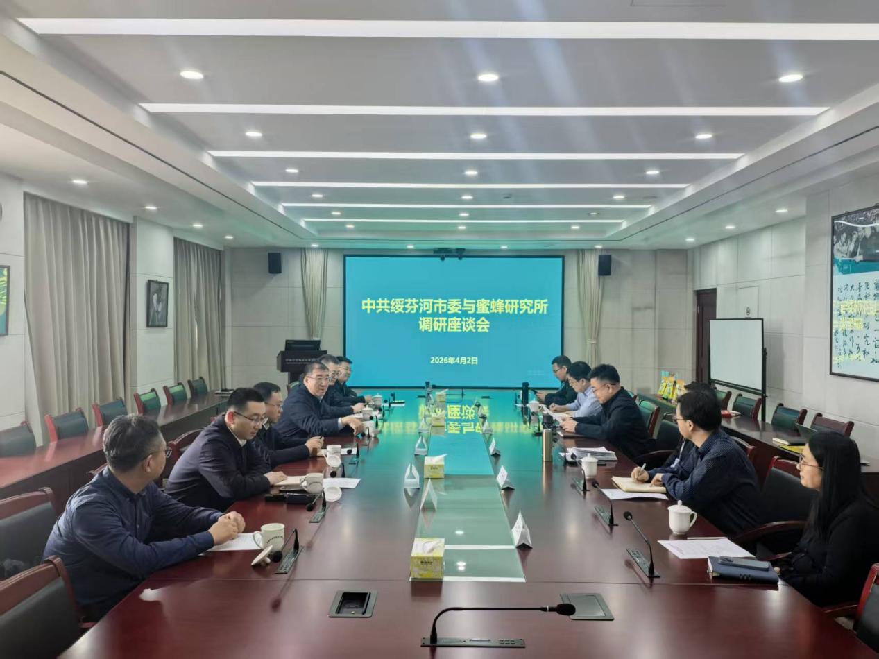 072026/04牡丹江市委常委、绥芬河市委书记王镭一行赴蜜蜂所调研交流近日,牡丹江市委常委、绥芬河市委书记王镭一行到访中国农业科学院蜜蜂研究所,双方围绕推动绥芬河蜂业高质量发展进行深入交流。蜜蜂所副所长田文礼出席会议。