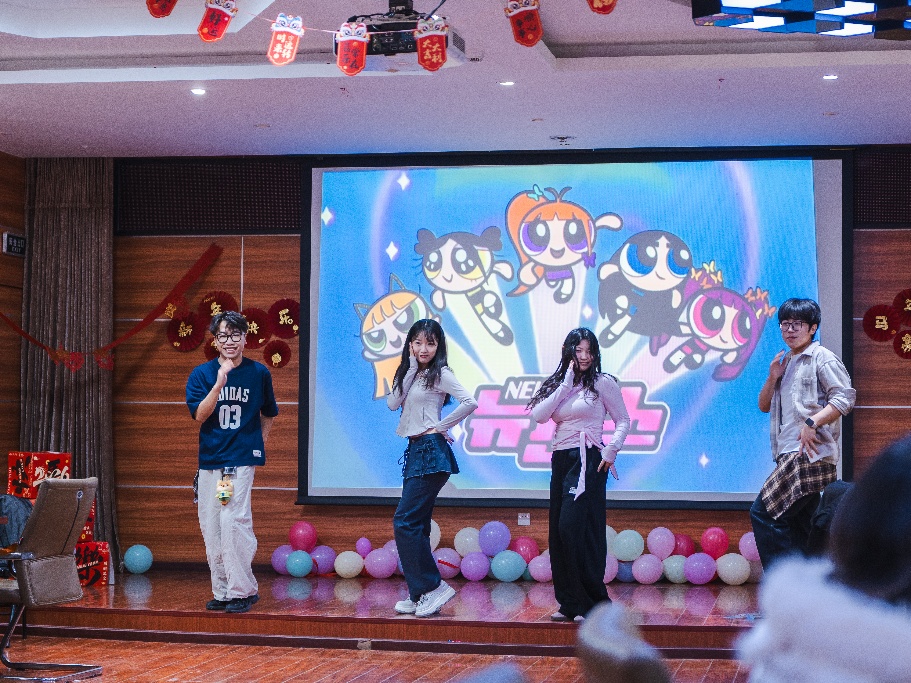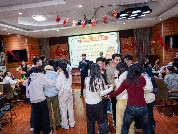 本次联欢会筹备工作细致周全,各工作小组分工协作、高效推进,从场地布置、物资筹备到设备调试、流程把控,每一个环节都精心安排,为活动顺利开展筑牢基础。活动伊始,活力满满的开场舞瞬间点燃现场气氛,游戏环节更让同学们收获满满惊喜,一次次将现场氛围推向高潮。趣味互动游戏环节是本次联欢会的一大亮点,踩气球、抢凳子、你划我猜、买菜游戏等经典趣味游戏依次开展,同学们踊跃参与、默契配合,在欢声笑语中比拼竞技、增进情谊,现场掌声、欢呼声此起彼伏。在温馨的新春氛围中,大家交流畅谈,满室皆是团圆的温情,在热气腾腾中感受新春的美好与集体的温暖。