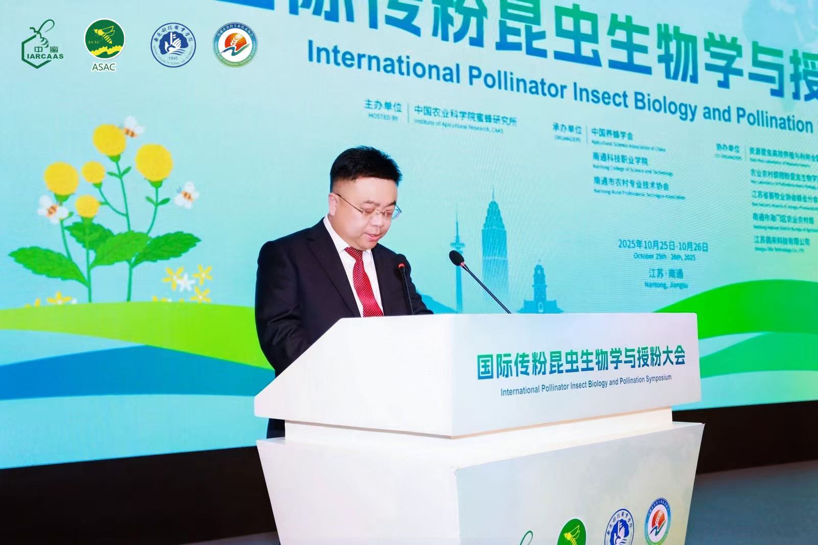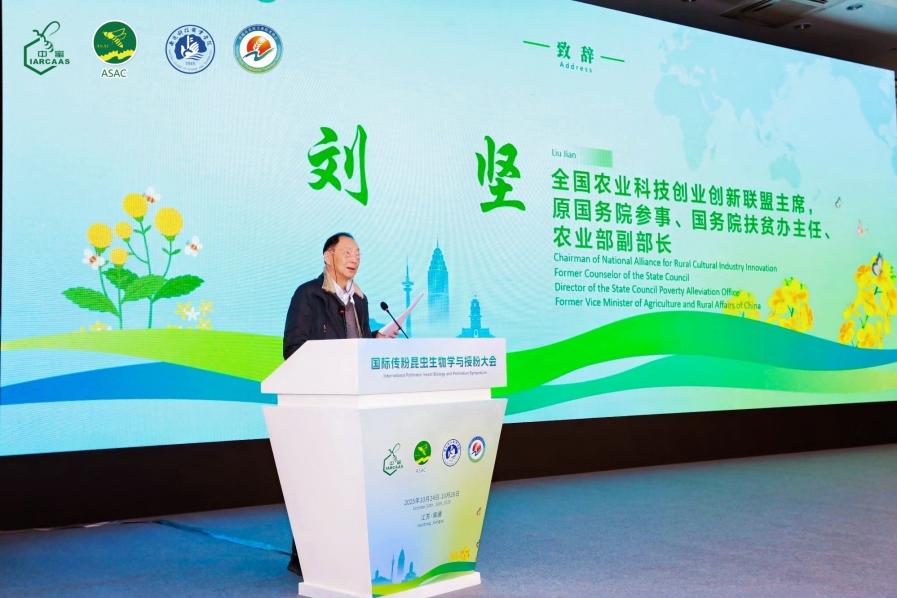 金秋十月,硕果盈枝,蜂酿甜香。10月24-26日,以“传粉昆虫与可持续未来:从科学到实践”为主题的国际传粉昆虫生物学与授粉大会在江苏省南通市举办。全国农业科技创业创新联盟主席,原国务院参事、国务院扶贫办主任、农业部副部长刘坚,农业农村部原国家首席兽医师(官)、中国乡村发展协会执行副会长兼秘书长李金祥,中国农业科学院副院长曹永生,南通市副市长刘洪出席会议并致辞。原江苏省农林厅厅长吴沛良,南通科技职业学院党委书记赵玉峰、原江西农业大学副校长曾志将等领导和专家出席会议。大会由中国农业科学院蜜蜂研究所副所长田文礼主持。