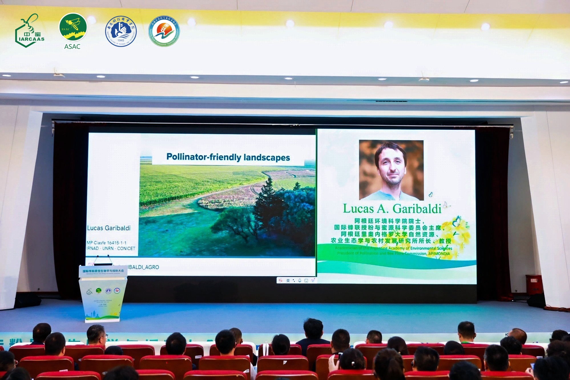 主旨报告环节,中国农业科学院蜜蜂研究所中华蜜蜂保护与利用团队首席科学家黄家兴研究员,阿根廷环境科学院院士、国际蜂联授粉与蜜源科学委员会主席Lucas A. Garibaldi,江西农业大学曾志将教授,澳大利亚莫纳什大学Scarlett Howard高级研究员,吉林省农业科学院张春宝研究员分别围绕中国蜜蜂授粉产业发展、传粉者友好景观、蜜蜂采集油茶蜜蜂中毒机理研究、变化世界中饲养蜂和野生蜂的学习能力、花朵选择与觅食策略、虫媒授粉技术在杂交大豆育种及制种上的应用等方面作了精彩的学术报告,全方位展示了传粉昆虫研究的最新成果。