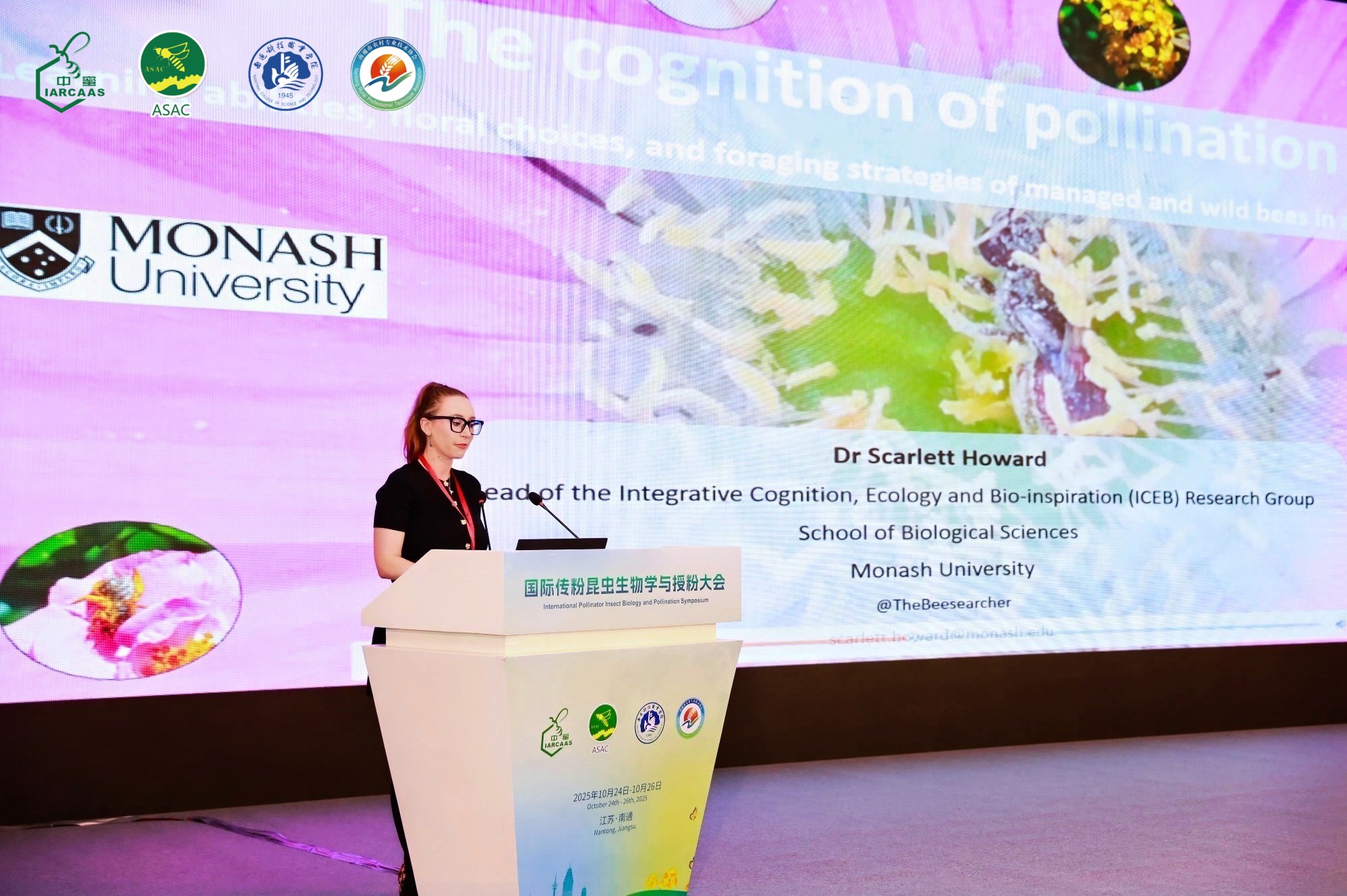 作为传粉昆虫中的核心力量,蜜蜂不仅是自然生态系统的 “守护者”,更是农业生产的 “隐形支柱”。据统计,全球超过85%的显花植物部分或完全依赖动物传粉进行繁殖,75%的农作物在一定程度上依赖动物传粉者,其中蜜蜂能为约40%的农作物提供有效授粉服务。蜜蜂授粉对保障我国粮食安全、推动农业绿色转型、助力乡村振兴战略具有重要作用。在此背景下,中国农业科学院蜜蜂研究所联合中国养蜂学会、南通科技职业学院、南通市农村专业技术协会共同举办了国际传粉昆虫生物学与授粉大会。本次大会聚焦传粉昆虫研究,吸引了来自中国、阿根廷、英国、澳大利亚、韩国、泰国等国家和地区的科研院所、高等院校专家学者,以及政府部门、企业代表等约150人参会。通过学术交流与研讨,不仅加强了各国传粉昆虫研究机构、从业部门间知识和技术交流,更针对全球传粉昆虫保护与授粉科技发展的重大和关键问题分享经验、研究对策,为培育授粉产业新质生产力、推动传粉昆虫技术成果落地转化提供了有力支撑,将进一步促进蜂业科技国际合作,为全球农业可持续发展与生态安全贡献力量。